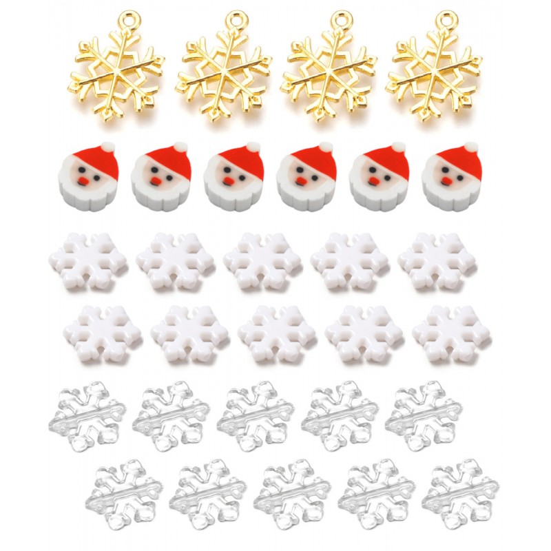 KORALIKI ŚWIETA ŚWIĄTECZNE MIKOŁAJE ŚNIEŻYNKI DO BRANSOLETEK ZESTAW 30szt