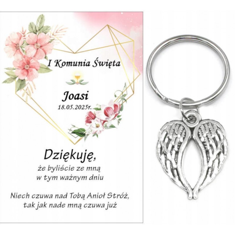 Podziękowanie dla gości brelok SKRZYDŁA KOMUNIA PERSONALIZACJA PAMIĄTKA A25
