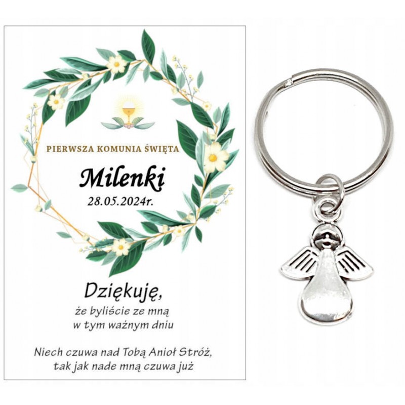 Podziękowanie dla gości brelok ANIOŁEK KOMUNIA PERSONALIZACJA PAMIĄTKA A22