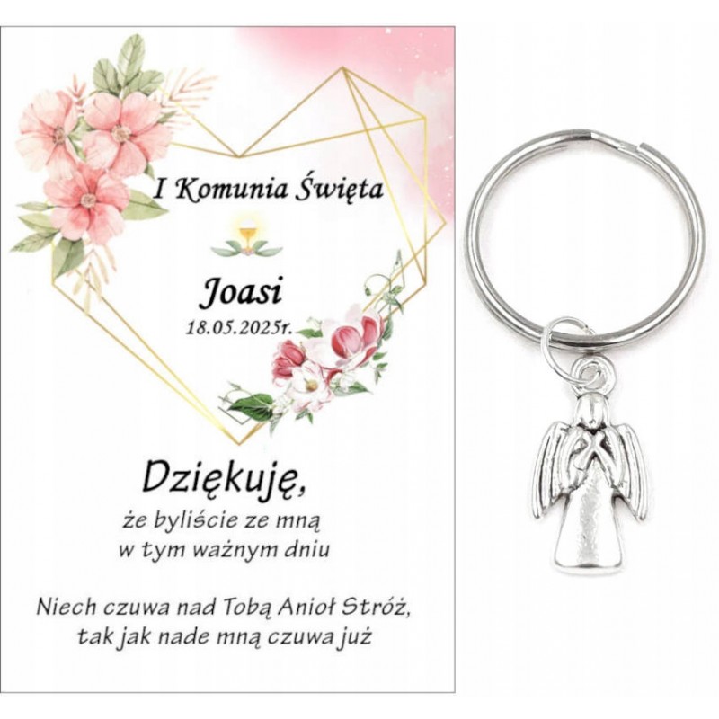 A11 Podziękowanie dla gości brelok ANIOŁEK KOMUNIA PERSONALIZACJA PAMIĄTKA