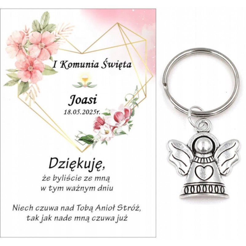 A5 Podziękowanie dla gości brelok ANIOŁEK KOMUNIA PERSONALIZACJA PAMIĄTKA