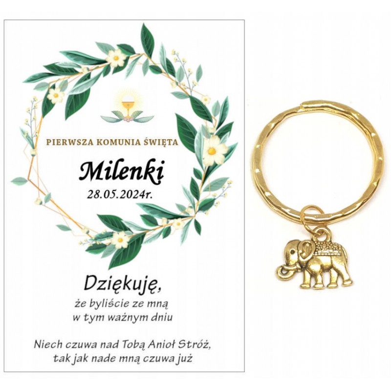 Podziękowanie dla gości brelok NA KOMUNIĘ SŁONIK PAMIĄTKA UPOMINEK PREZENT