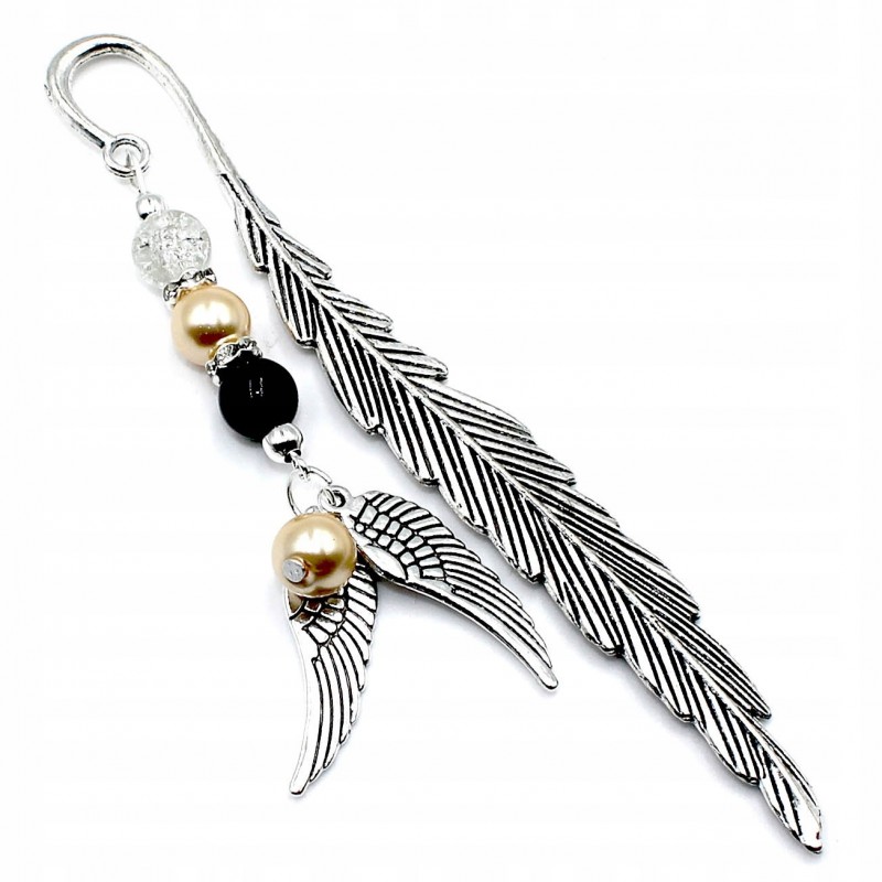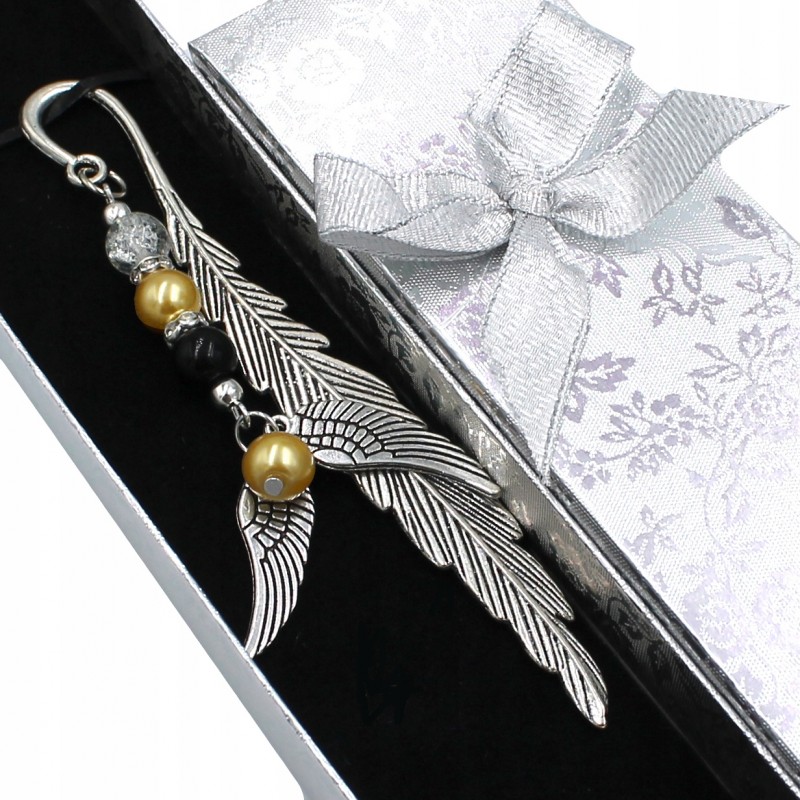 Zakładka do książki piórko z perełkami i skrzydełkami, w pudełku.