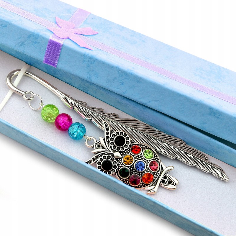 Uniwersalna zakładka do książki z zawieszką w kształcie sowy, z dołączonym opakowaniem może stać się wspaniałym podarunkiem dla bliskiej osoby na różne okazje. Zakładka może być prezentem dla nauczycieli na zakończenie roku szkolnego. może też być podarunkiem np. na urodziny, dzień dziecka lub dzień matki.