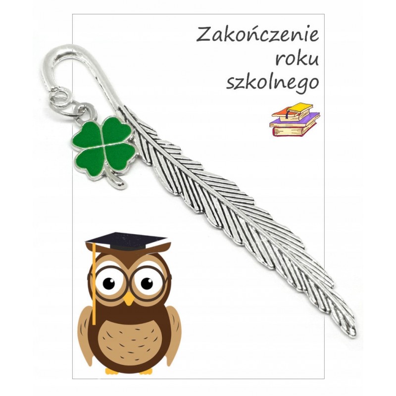Uniwersalna zakładka do książki z zawieszką w kształcie koniczyny, z dołączonym opakowaniem może stać się wspaniałym podarunkiem dla bliskiej osoby na różne okazje. Zakładka może być prezentem dla uczniów i uczennic lub nauczycieli na zakończenie roku szkolnego. może też być podarunkiem np. na urodziny, dzień dziecka lub dzień matki.