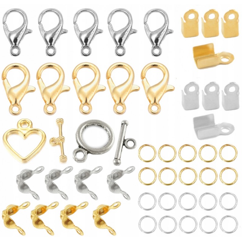 ZESTAW ZAPIĘCIA KARABIŃCZYKI ZACISKI KOŃCÓWKI DO BRANSOLETEK BIŻUTERII 50sz